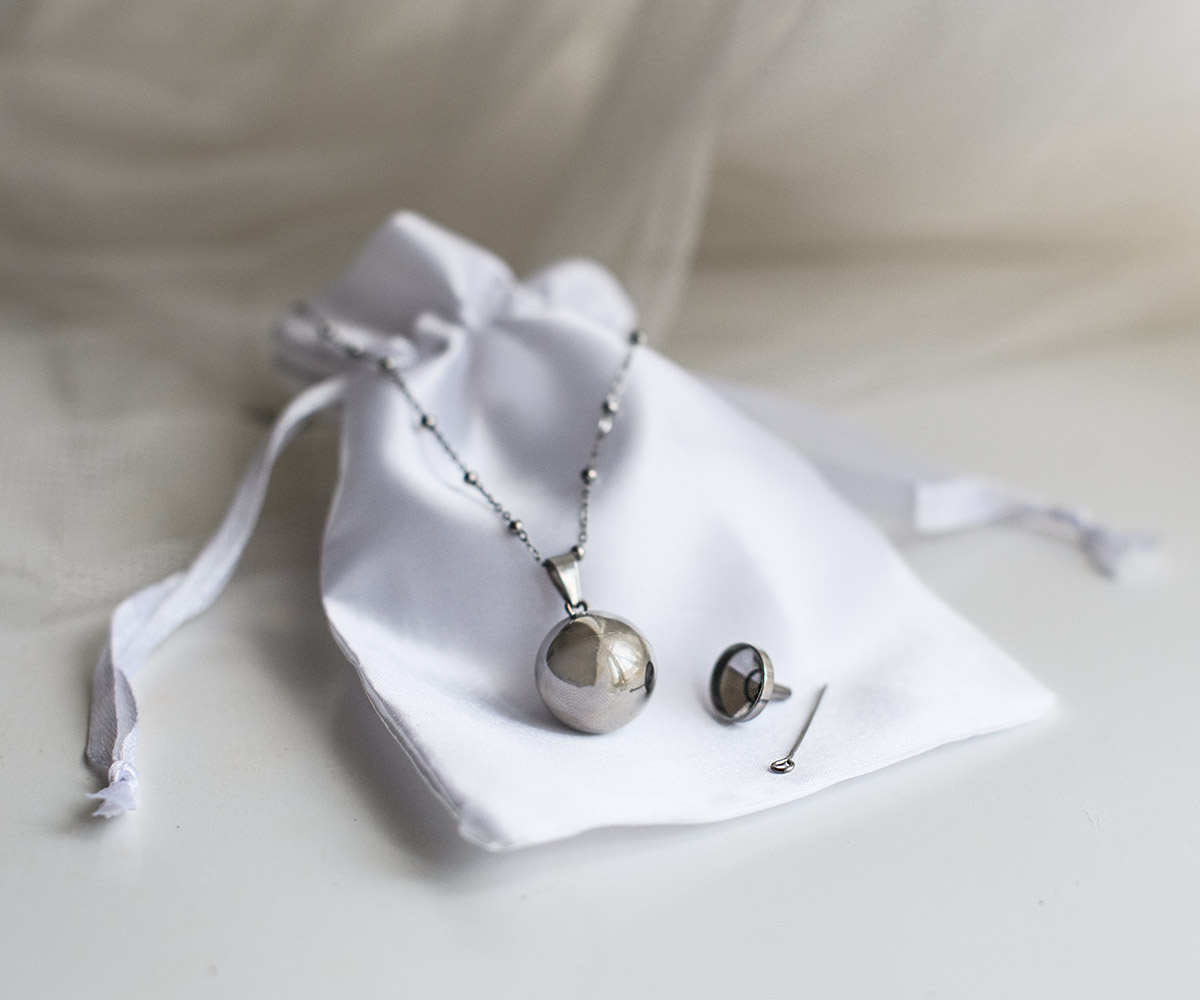 Každý šperk má uvnitř malý dutý prostor – obvykle se uzavírá pomocí závitu. Pomocí přiložené mini nálevky s jehlou se dovnitř vloží symbolické množství popela, případně jiná památka (například pramínek srsti). Po uzavření závitu můžete přidat malou kapku lepidla (např. sekundového), aby se vnitřní prostor uzavřel napevno. Zvenku není nic vidět – šperk vypadá jako běžný, elegantní doplněk.
