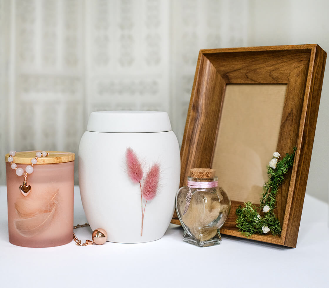 Možností existuje několik. Decentní šperk na popel mazlíčka dovolí mít vzpomínku stále nablízku. Minimalistická urna pro psa nebo urna pro kočku se může stát součástí domova bez toho, aby působila rušivě. Zapálená vzpomínková svíčka symbolizuje světlo a teplo, které nám naši společníci dávali. A drobný rámeček s fotografií či sklenička s pramínkem chloupků připomene jedinečný příběh, který jsme spolu sdíleli.