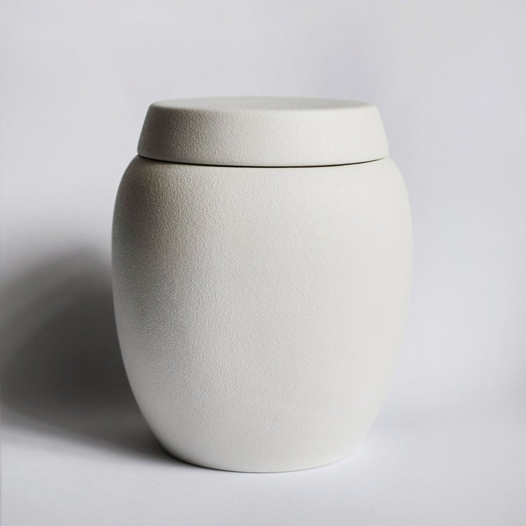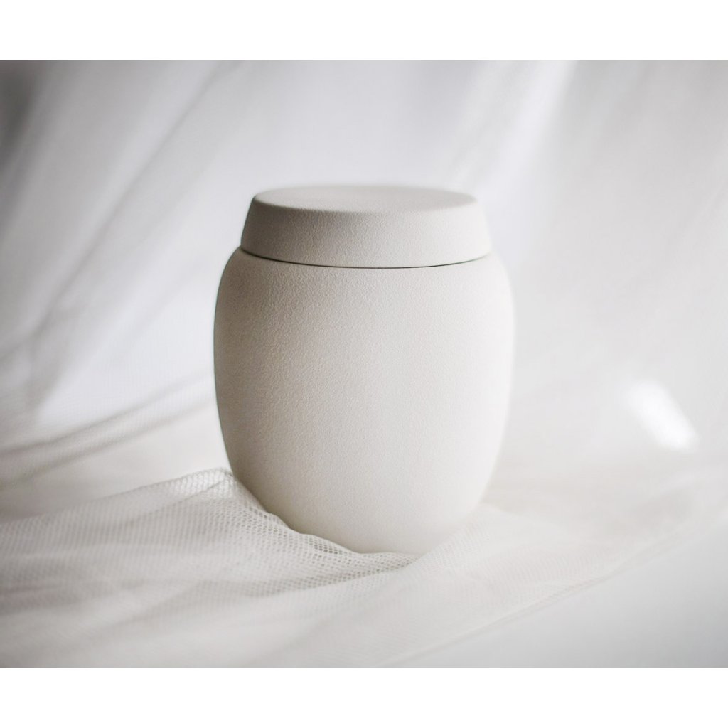 Tato urna je navržena pro uložení popela zvířete po posledním rozloučení. Její čistý tvar a matně bílý povrch působí klidně a nenápadně – tak, aby se stala tichou součástí domova nebo vzpomínkového místa.