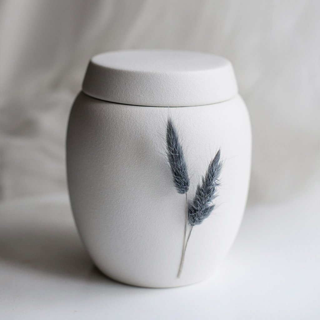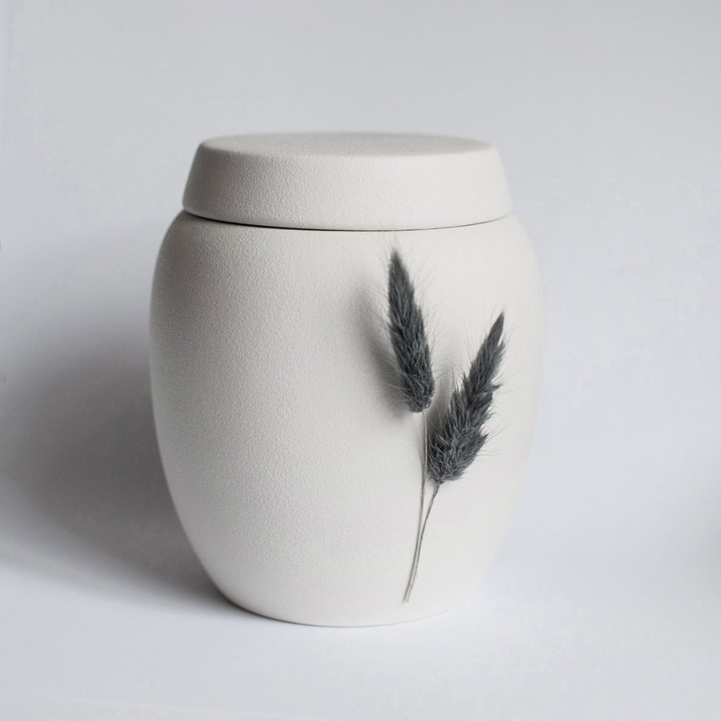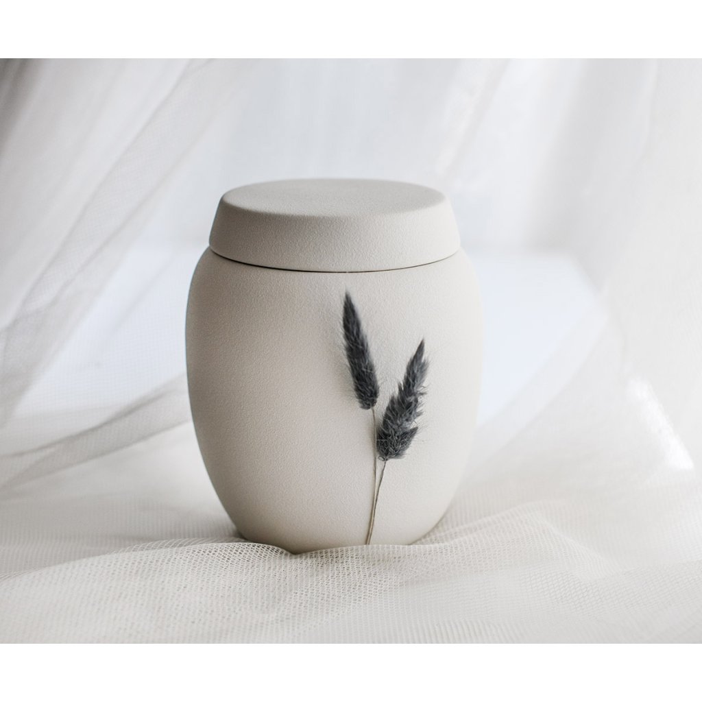 Tato urna je navržena pro uložení popela zvířete po posledním rozloučení. Její čistý tvar a matně bílý povrch působí klidně a nenápadně – tak, aby se stala tichou součástí domova nebo vzpomínkového místa.