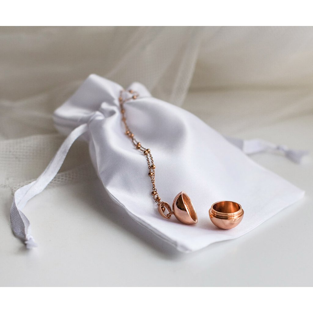 Minimalistický šperk z chirurgické oceli s povrchovou úpravou 18k růžového zlata, do kterého můžete uložit malou část popela, chloupků nebo jinou drobnou památku na vašeho mazlíčka.