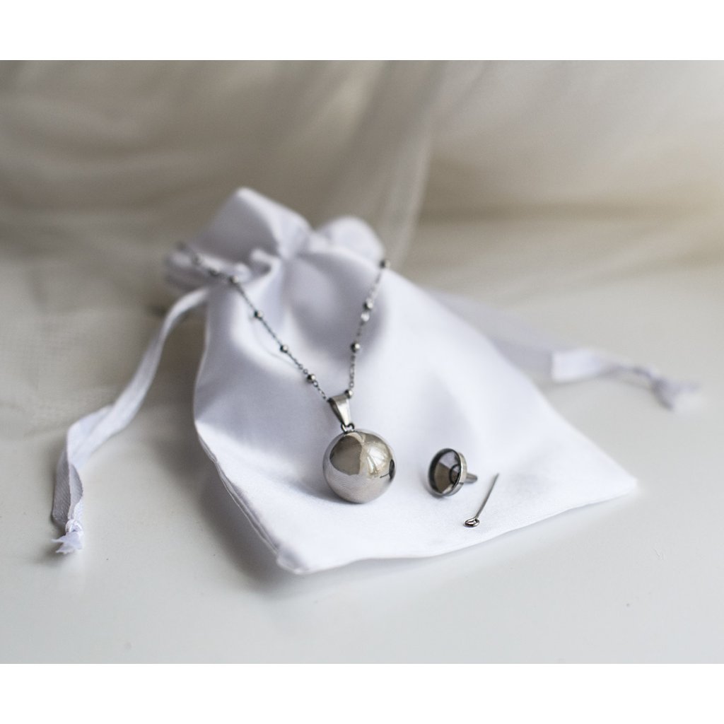 Součástí šperku je kulatý přívěsek v barvě stříbra – malá šroubovací urnička, která umožňuje bezpečně uchovat popel, srst nebo jinou drobnou památku na vaše zvíře. Díky jednoduchému systému uzávěru zůstává obsah v bezpečí a umožňuje nosit jeho vzpomínku stále při sobě - s lehkostí, elegancí a respektem.