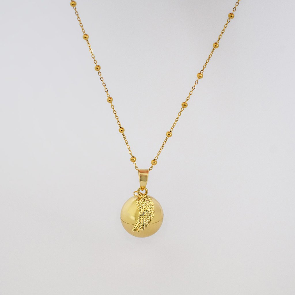 Materiál: chirurgická ocel s povrchovou úpravou 18k zlata (kulička, řetízek), obecný kov (přívěsek)