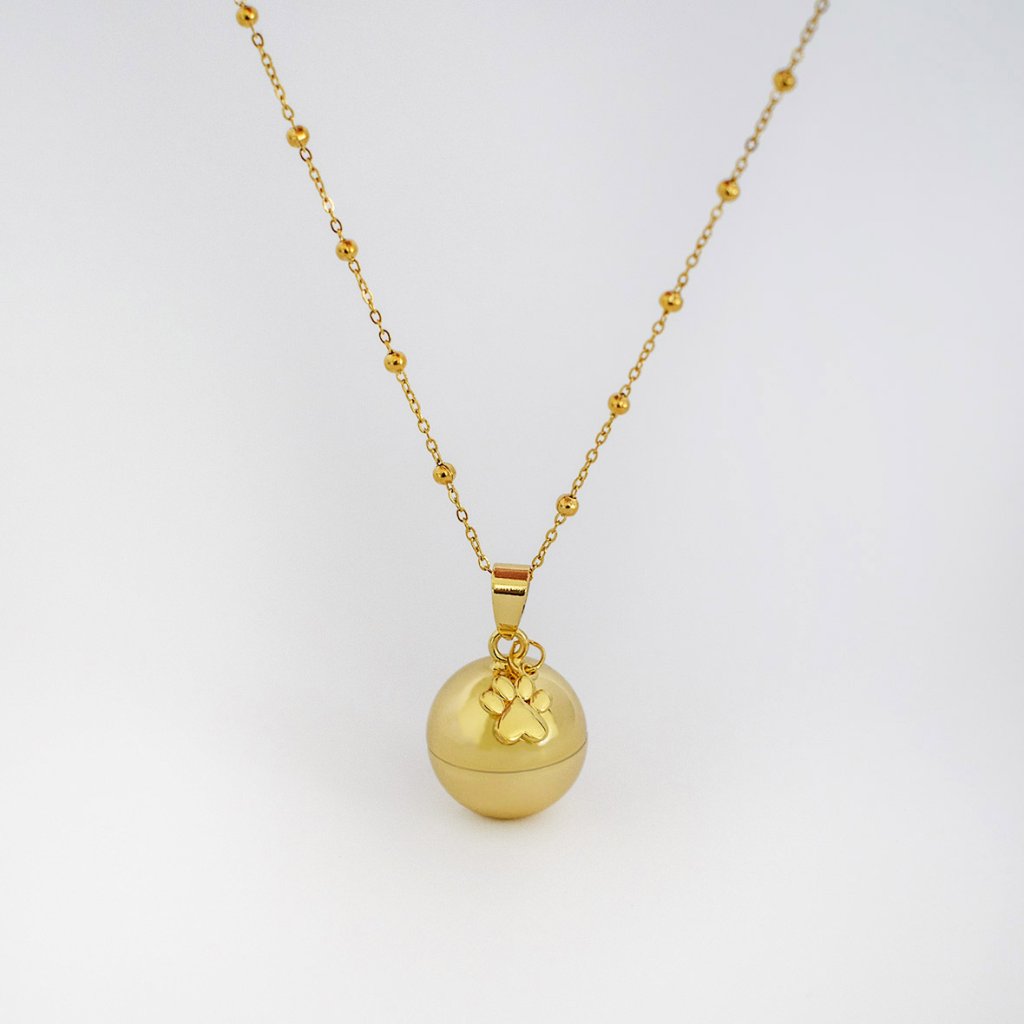 Součástí šperku je kulatý přívěsek v barvě zlata – malá šroubovací urnička, která umožňuje bezpečně uchovat popel, srst nebo jinou drobnou památku na vaše zvíře. Díky jednoduchému systému uzávěru zůstává obsah v bezpečí a umožňuje nosit jeho vzpomínku stále při sobě - s lehkostí, elegancí a respektem.
