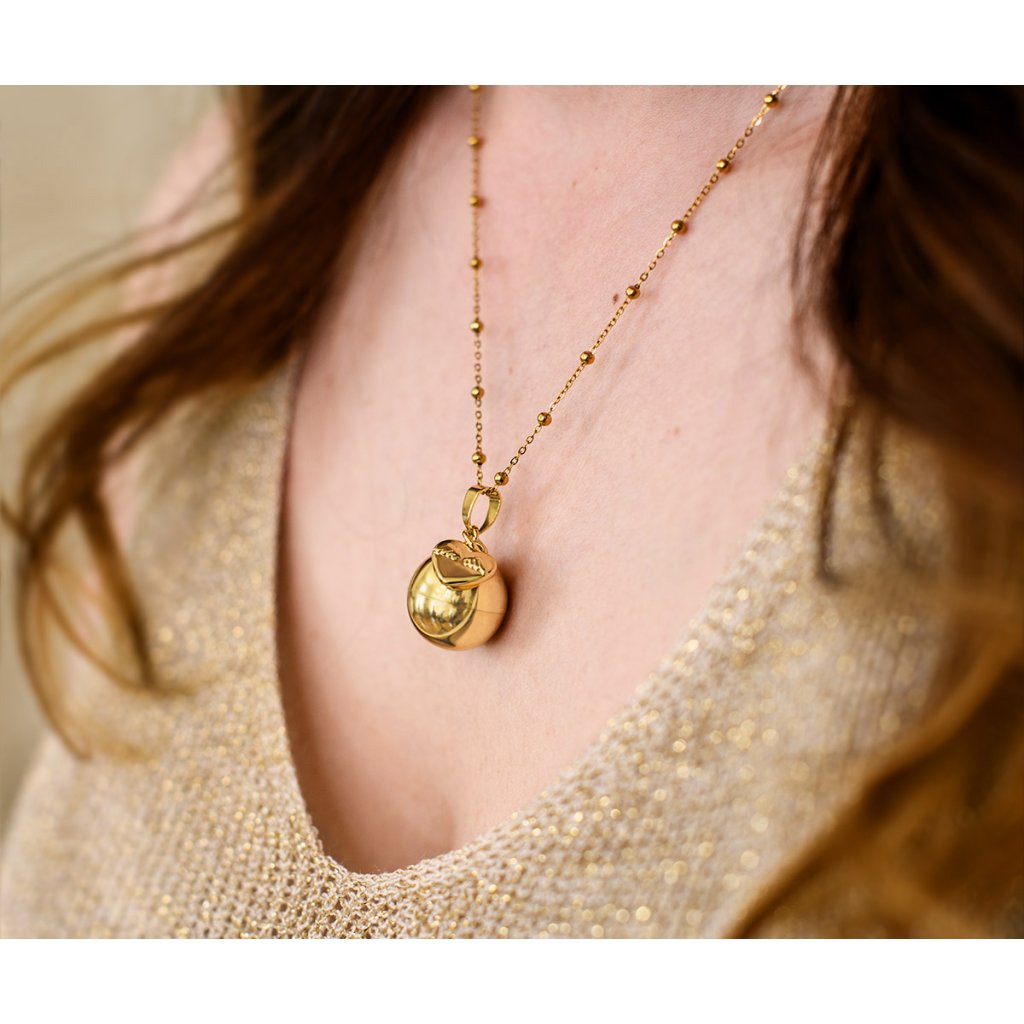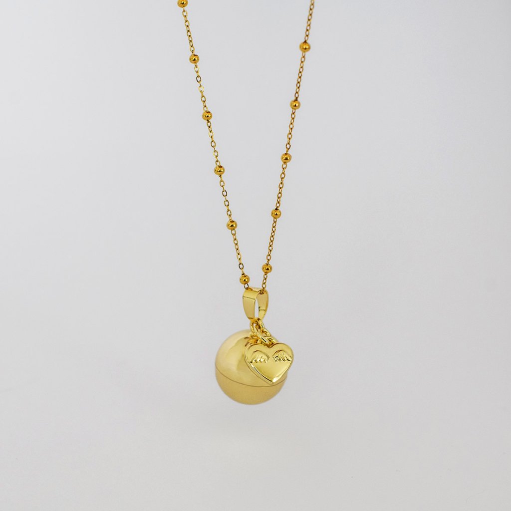 Součástí šperku je kulatý přívěsek v barvě zlata – malá šroubovací urnička, která umožňuje bezpečně uchovat popel, srst nebo jinou drobnou památku na vaše zvíře. Díky jednoduchému systému uzávěru zůstává obsah v bezpečí a umožňuje nosit jeho vzpomínku stále při sobě - s lehkostí, elegancí a respektem.